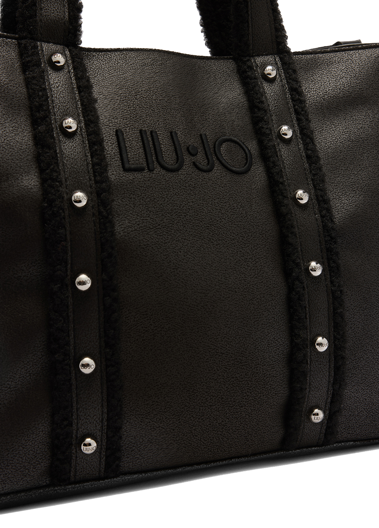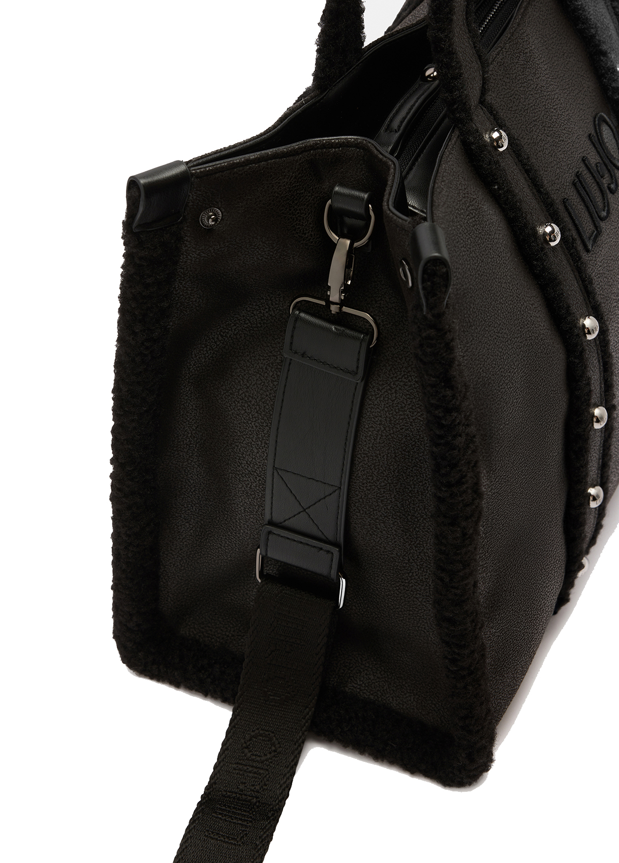 Este bolso destaca por gran tamaño y su forma tote con relieve exterior efecto borreguillo. Un modelo audaz que puede llevarse al hombro o tipo bandolera gracias a su correa ajustable y extraíble.