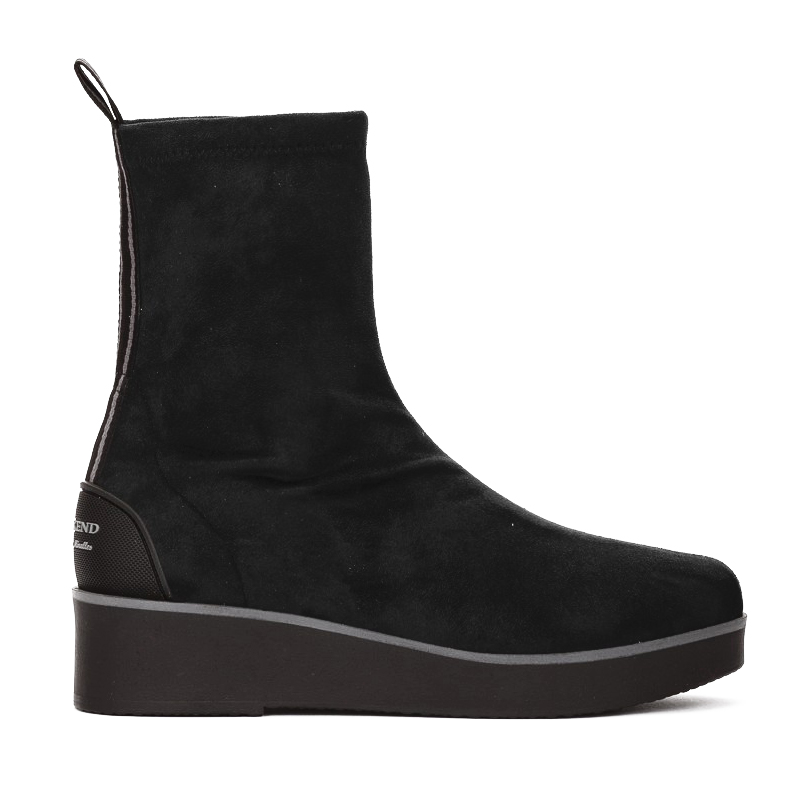 Botines de tejido elástico estilo neopreno de color negro. Apuesta por la comodidad en tus looks de diario con estos botines. Te encantará su tejido elástico, perfecto para una correcta sujeción que se adapta a la forma del pie y el tobillo, brindando comodidad y estilo en cualquier circunstancia.