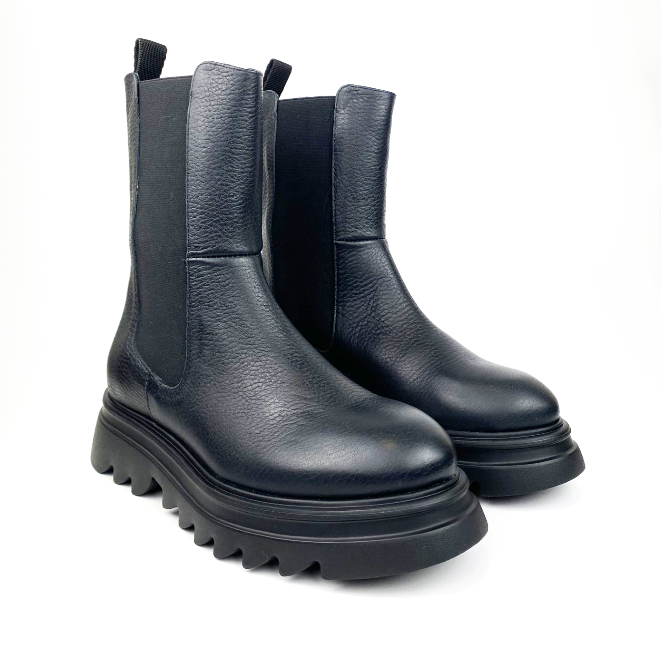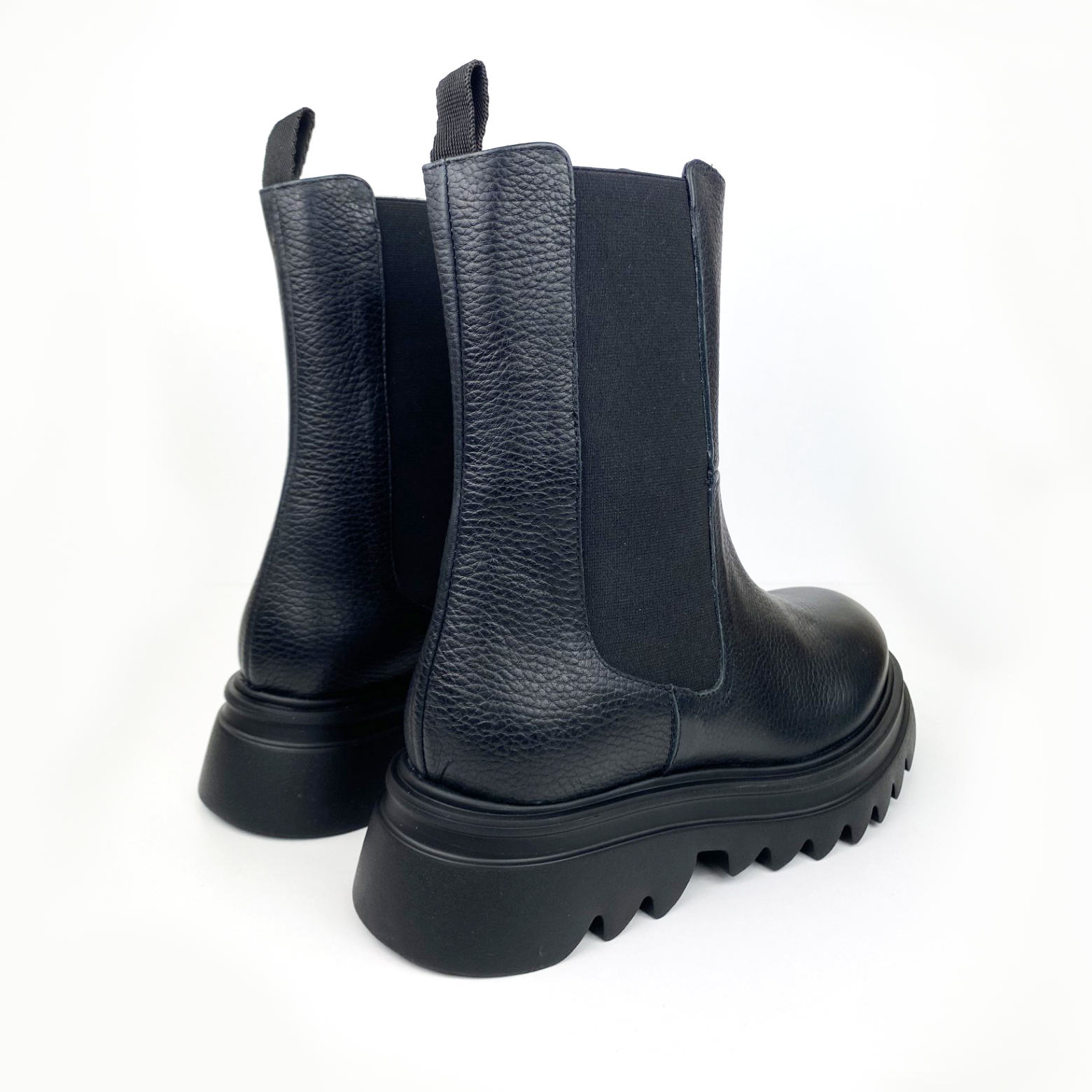 Botín de tejido elástico de color negro. Su diseño auténtico y distintivo, combinado con la calidad de los materiales, los convierte en una opción versátil y duradera para los amantes de la moda.