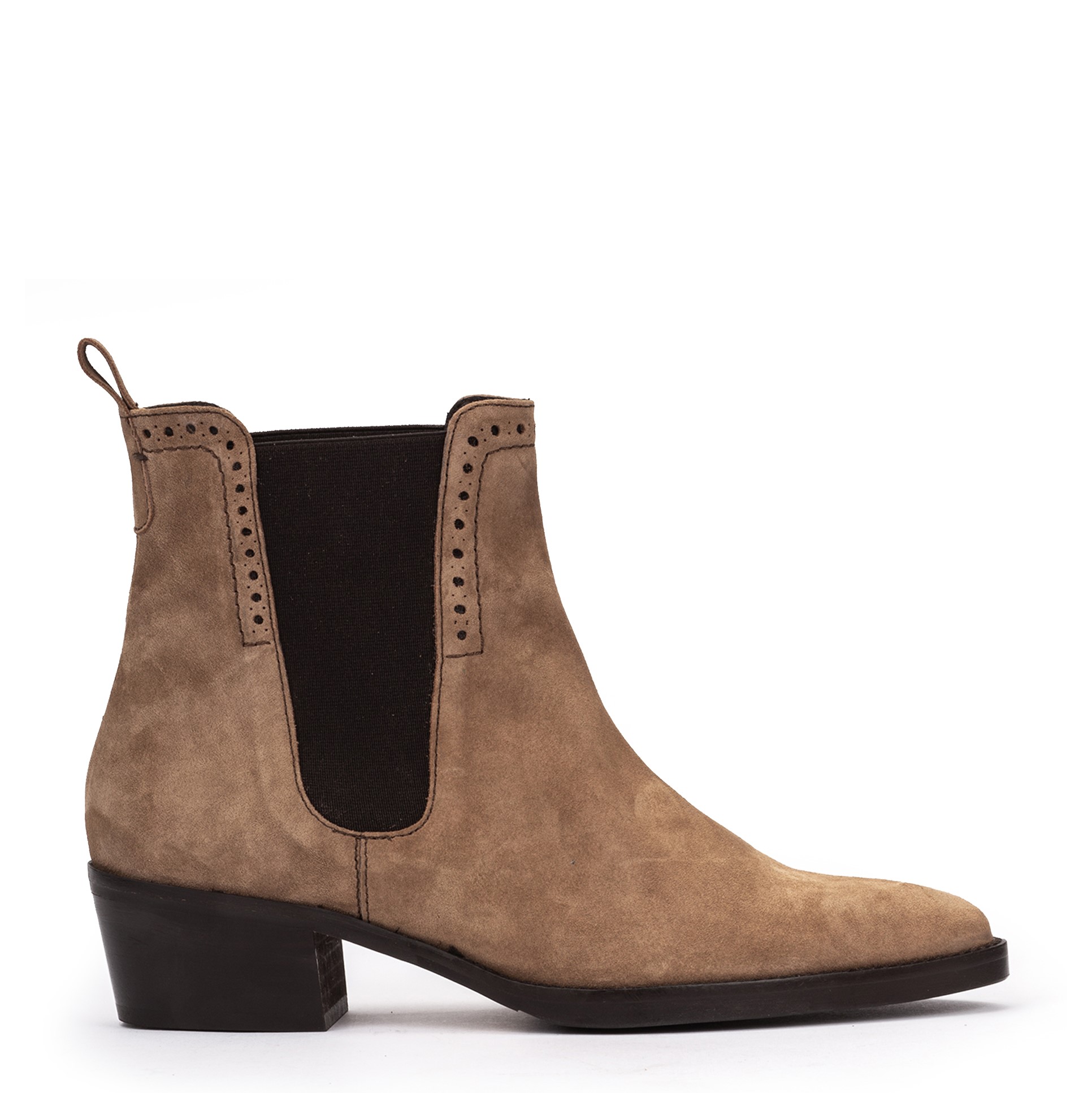 Uno de los elementos más destacados de estos botines son los picados, que crean un contraste visual cautivador y realzan la belleza del material, convirtiendo estos botines en una pieza única. La silueta de los botines Chelsea es reconocible por su diseño sin cordones y su elástico en los laterales.