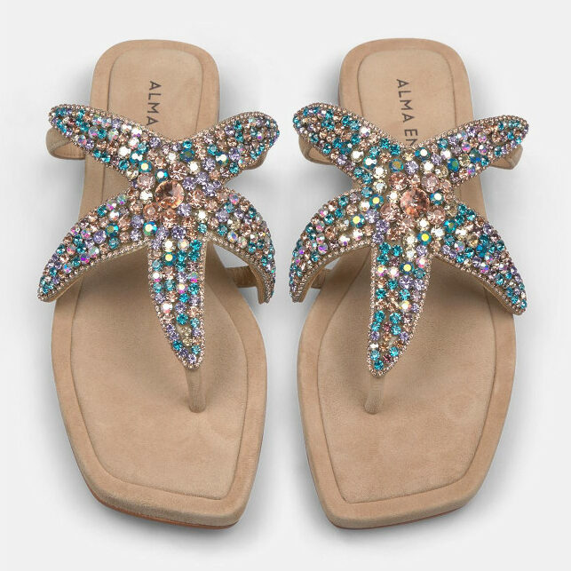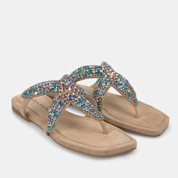 Las sandalias SUEDE es un modelo muy cómodo que tiene la plantilla acolchada, con tiras de pedrería y con detalles de brillos. Además, es muy fácil de calzar gracias a no tener cierre y su puntera cuadrada.