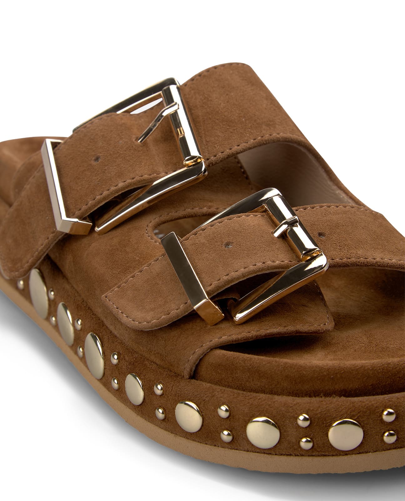 Sandalias Suede Caramel Tachuelas Alma En Pena