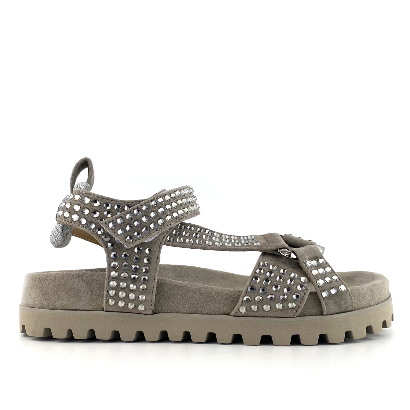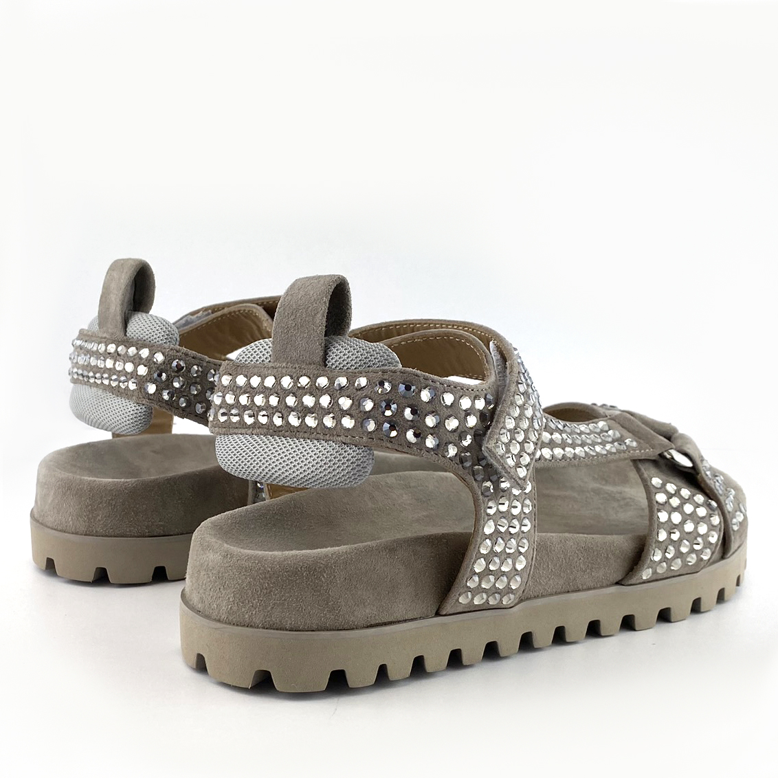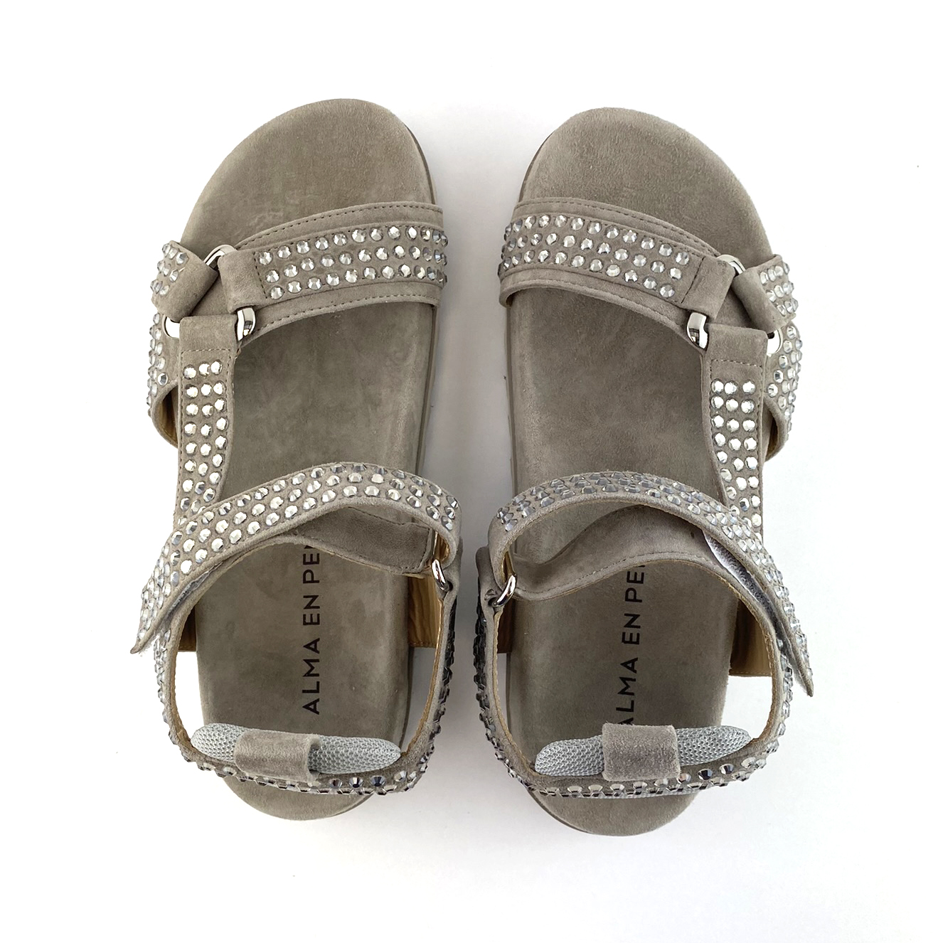 Las sandalias SUEDE es un modelo muy cómodo que tiene la plantilla acolchada, con tiras de pedrería y con detalles de brillos. Además, se sujeta muy bien el pie gracias a su puntera redonda y el cierre con hebilla.
