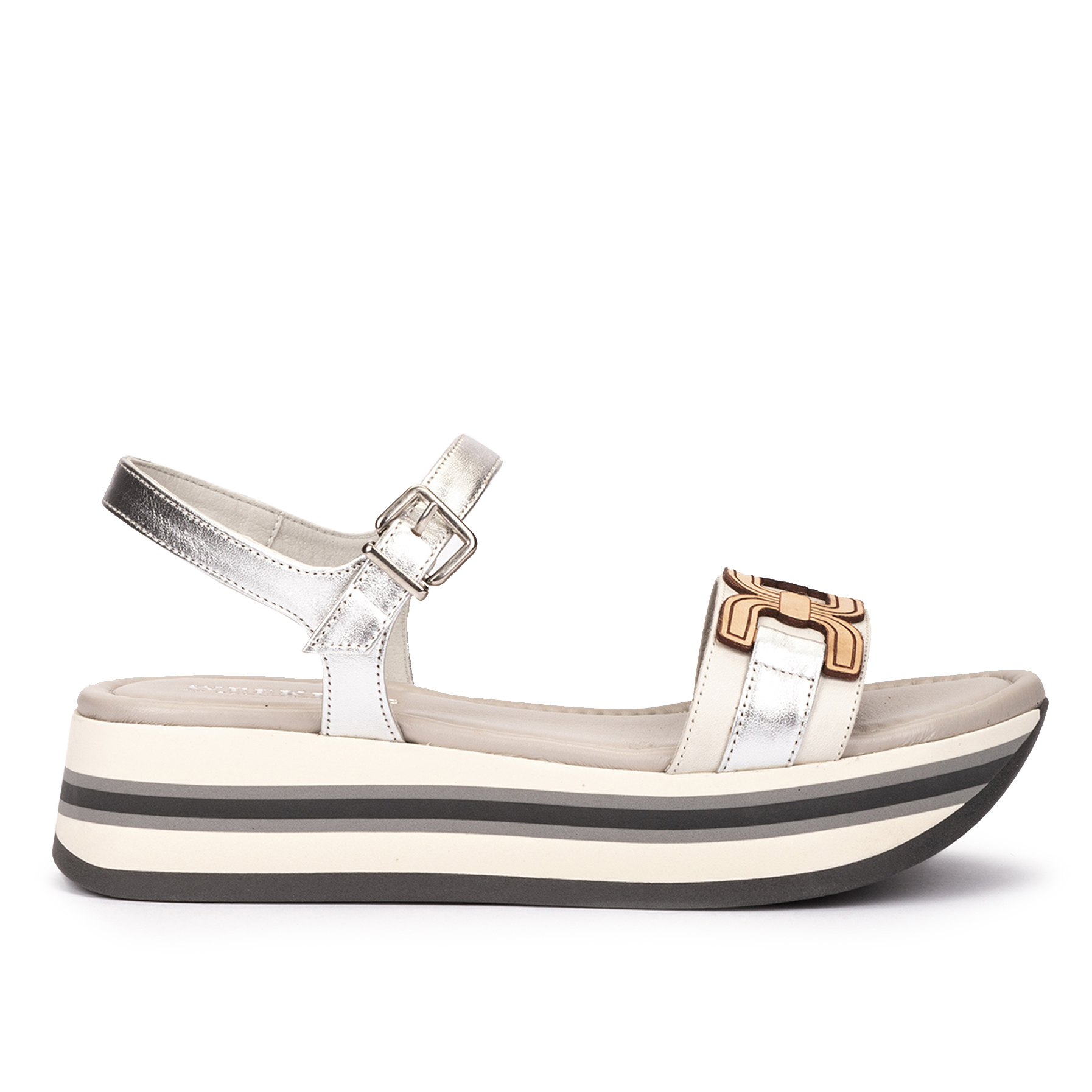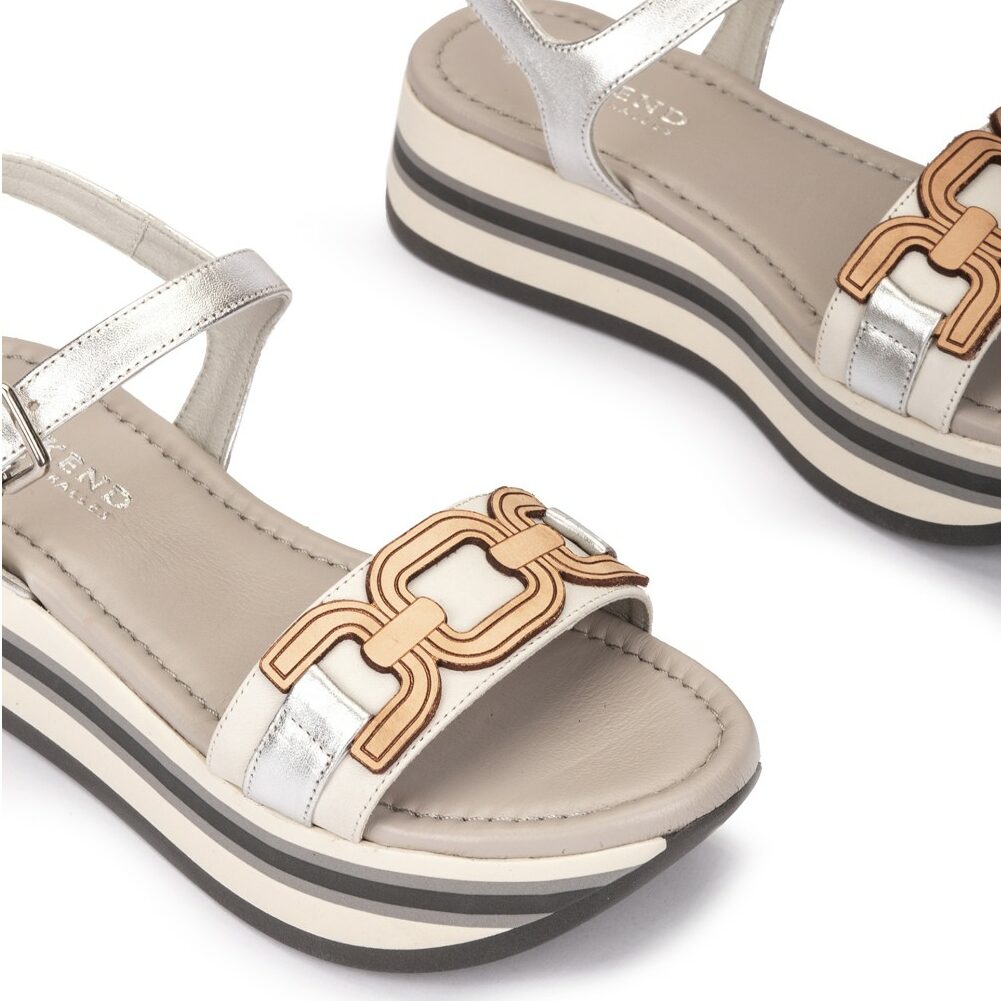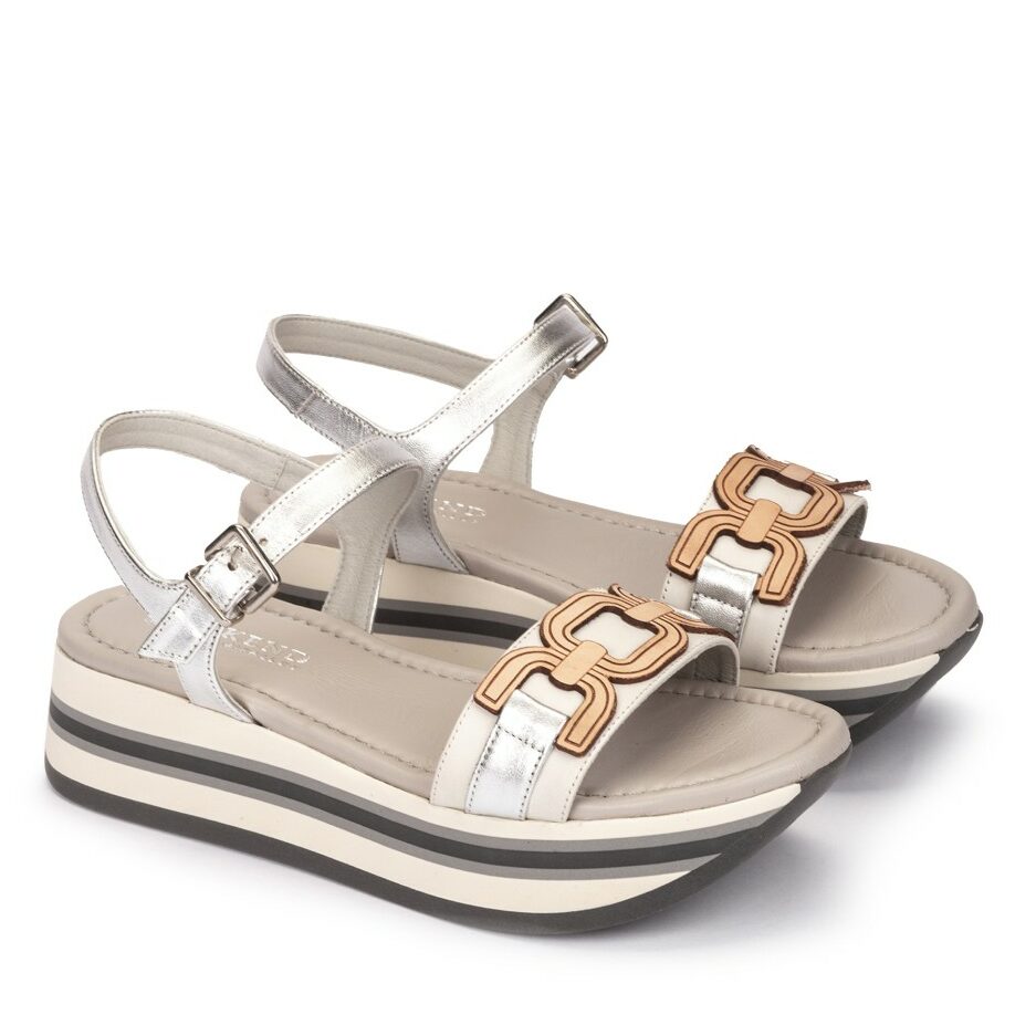 Sandalias planas de piel en color blanco roto, confeccionadas con una pala colocadas sobre una cómoda plataforma de estilo moderno que le aporta una apariencia única y futurista. Te invitamos a probar estas sandalias y descubrir el equilibrio perfecto entre el estilo casual, el confort y la calidad que solo Pedro Miralles puede proporcionar.