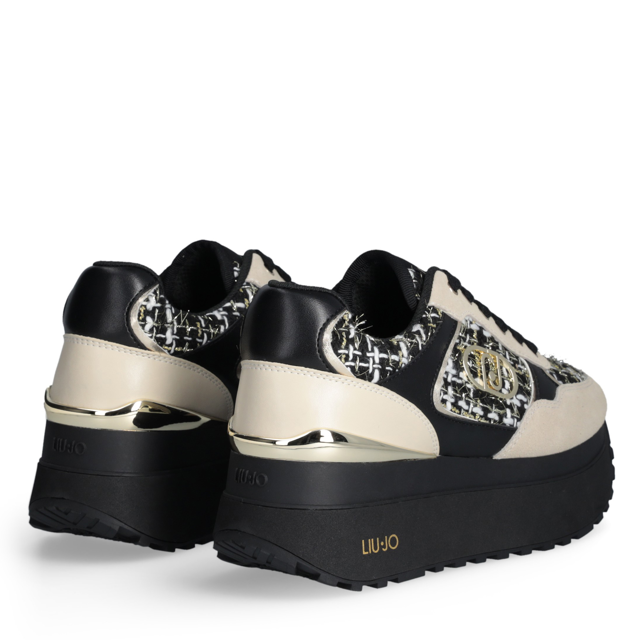 Las sneakers Liu Jo Maxi Wonder con pala de de brillos y nailon, inserciones de ante y efecto laminado y logotipo monograma metálico desprenden un carácter único e inconfundible, seducen nuestros sentidos por su particular apuesta de un diseño sofisticado sin renunciar al confort.