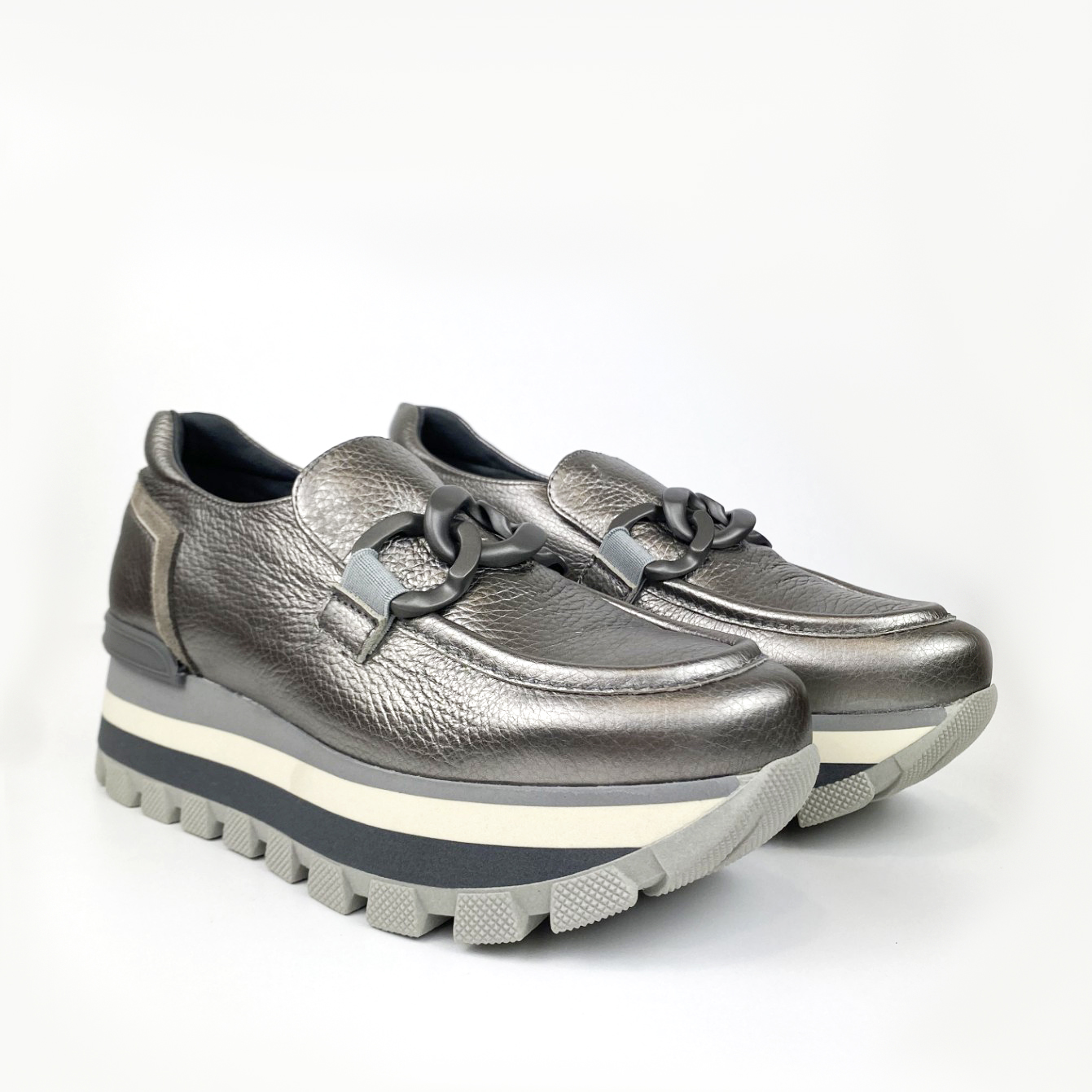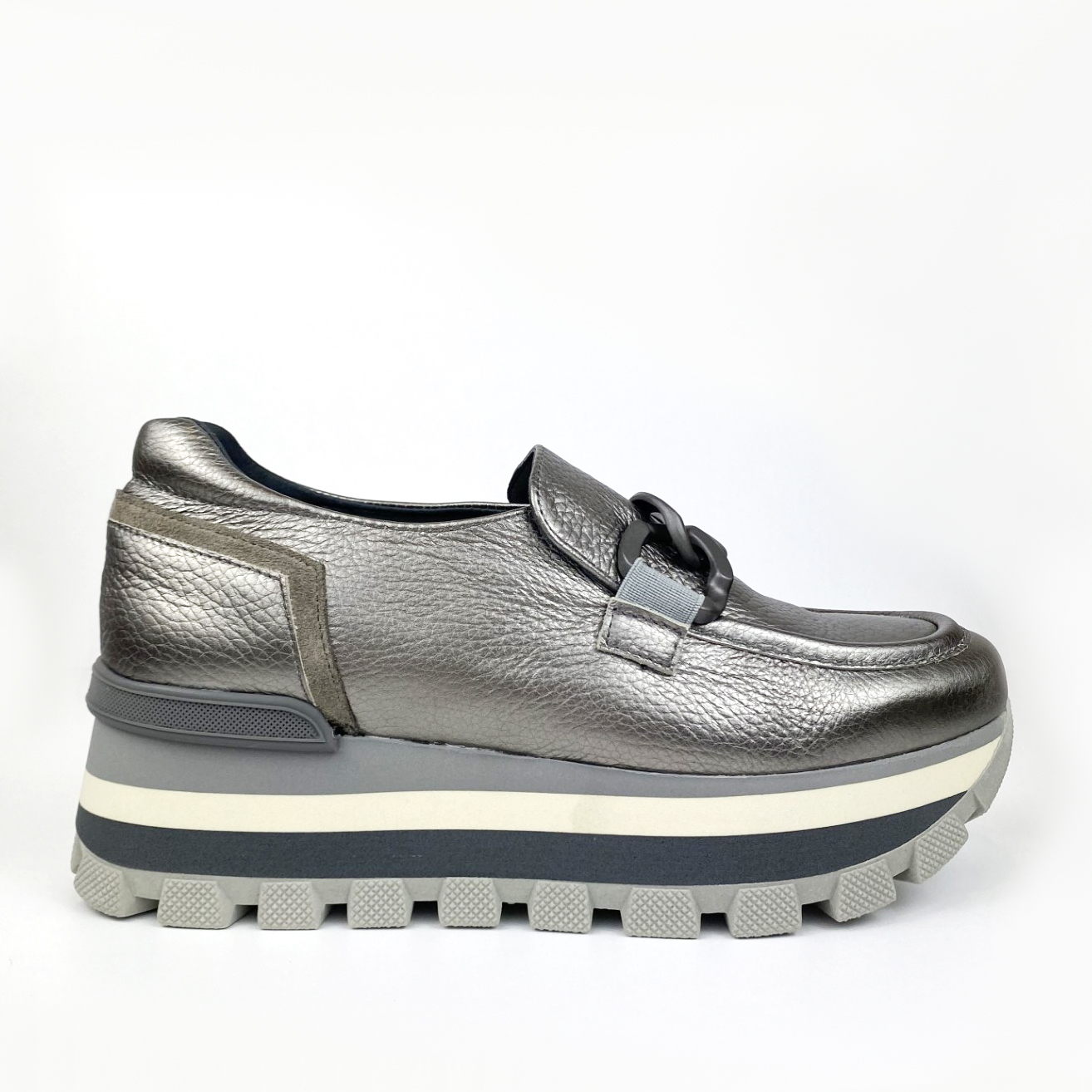 Zapato deportivo metalizado con plataforma. Este modelo combina la comodidad de un deportivo y el estilo de un zapato para tus looks de diario. El broche en la pala superior es el adorno perfecto para este modelo. Te invitamos a probar estos zapatos deportivos y descubrir el equilibrio perfecto entre el estilo casual, el confort y la calidad que solo Pedro Miralles puede proporcionar.